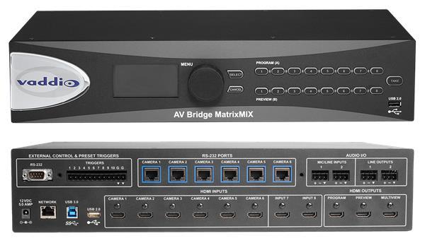 Designed specifically for live production applications. System includes AV Bridge MatrixMIX Switcher and PCC MatrixMIX Controller.