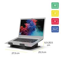 This product is an ergonomic adjustable notebook stand, compatible with 10 "to 15.6" notebooks. Safety hooks and non-slip pads prevent the device from falling off the stand.