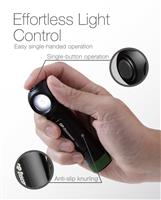 Ta loss lampan och den blir en ficklampa. Kraftfullt ljussken som når 130 meter. Laddningsbar. Magnetfäste på kortändan.