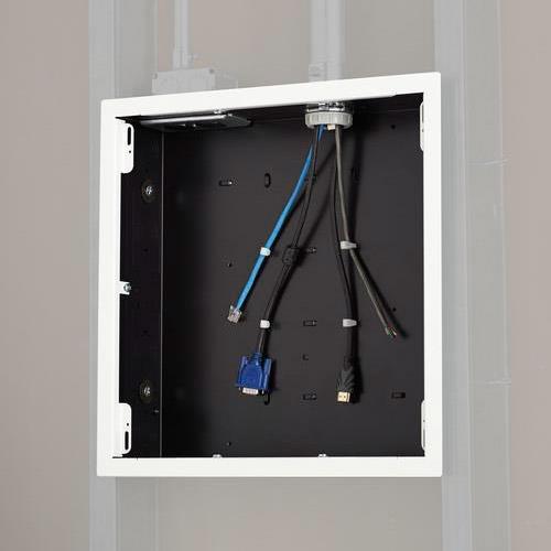 The PAC526FW simplifies flat panel installation by providing an organized, recessed space for routing excess cables and for attaching surge protectors/power conditioners. The addition of the flange adds an aesthetic trimmed appearance and drywall mounting capability.