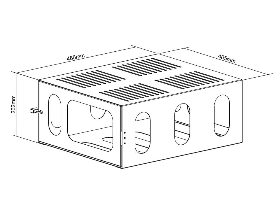 - Encloses a projector max 482x402x198 mm in a steel cage to protect from theft