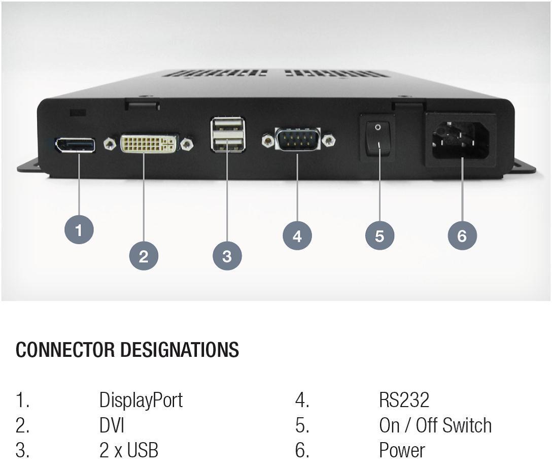 · Comprehensive connectivity: 2 x USB, DVI, DisplayPort & RS232.