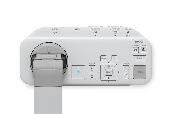 Advanced document camera for use with Epson education projectors, it features both optical and digital zoom for clear magnification to enhance classroom learning