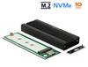 Detta hölje från Delock möjliggör installation av en M.2 PCIe NVMe SSD i 2280, 2260, 2242 och 2230-format. Den kan anslutas via USB till stationär eller bärbar dator. Det robusta metallhöljet med kylflänsar längst upp säkerställer optimal temperatur för minnet.