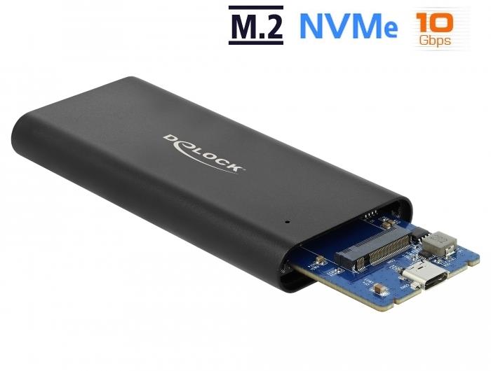 Detta hölje från Delock möjliggör installation av en M.2 PCIe NVMe SSD i 2280, 2260 och 2242-format. Den kan anslutas via USB till stationär eller bärbar dator. Det robusta metallhöljet säkerställer en optimal temperatur för minnet.