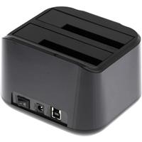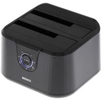 DELTACO dockningsstation för dubbla 2,5" och 3,5" SATA-hårddiskar, SATA 6 Gb/s, USB 3.0, svart