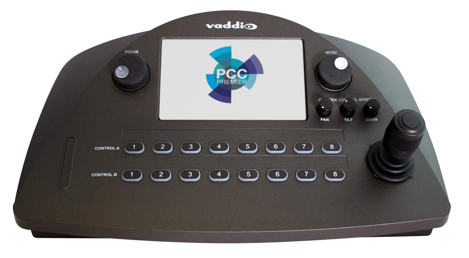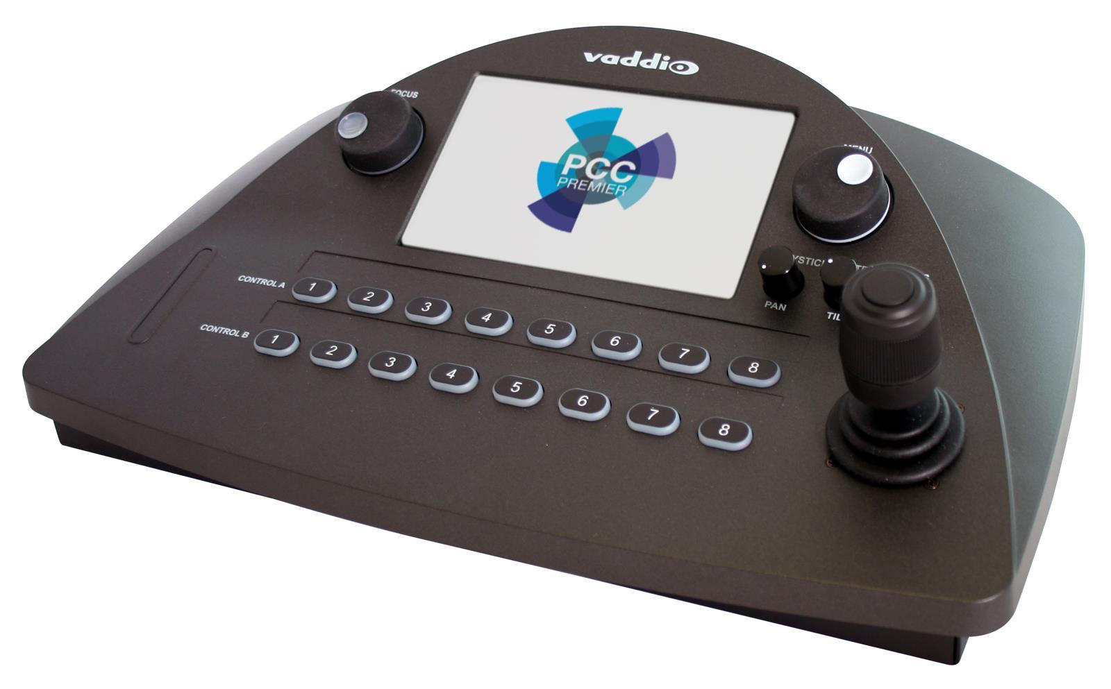 Vaddio’s PCC Premier, Precision Camera Controller Premier, is the newest addition to the camera controller consoles with the added advantage of anywhere, anytime control for your best video production yet. The PCC Premier can control up to eight Vaddio, Sony and Panasonic cameras with RS-232 and controlling an additional 80 Vaddio IP cameras over the IP Network.