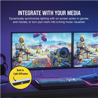 Extend your RGB lighting beyond your PC with diffused colors and intricate lighting effects, creating an immersive backdrop. Dynamically match the on-screen action in games, movies, and videos, or turn your room into a living visualizer for your music.