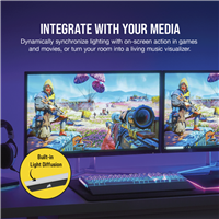 Extend your RGB lighting beyond your PC with diffused colors and intricate lighting effects, creating an immersive backdrop. Dynamically match the on-screen action in games, movies, and videos, or turn your room into a living visualizer for your music.