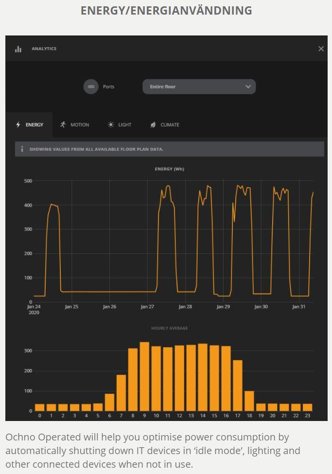 Ochno Operated is our user friendly cloud service where you easily can measure, steer and optimise occupancy, the work environment, and power consumption in your workspace. It’s a platform that streamlines the way you manage your workplace and helps to create a work environment optimised for those who use it.