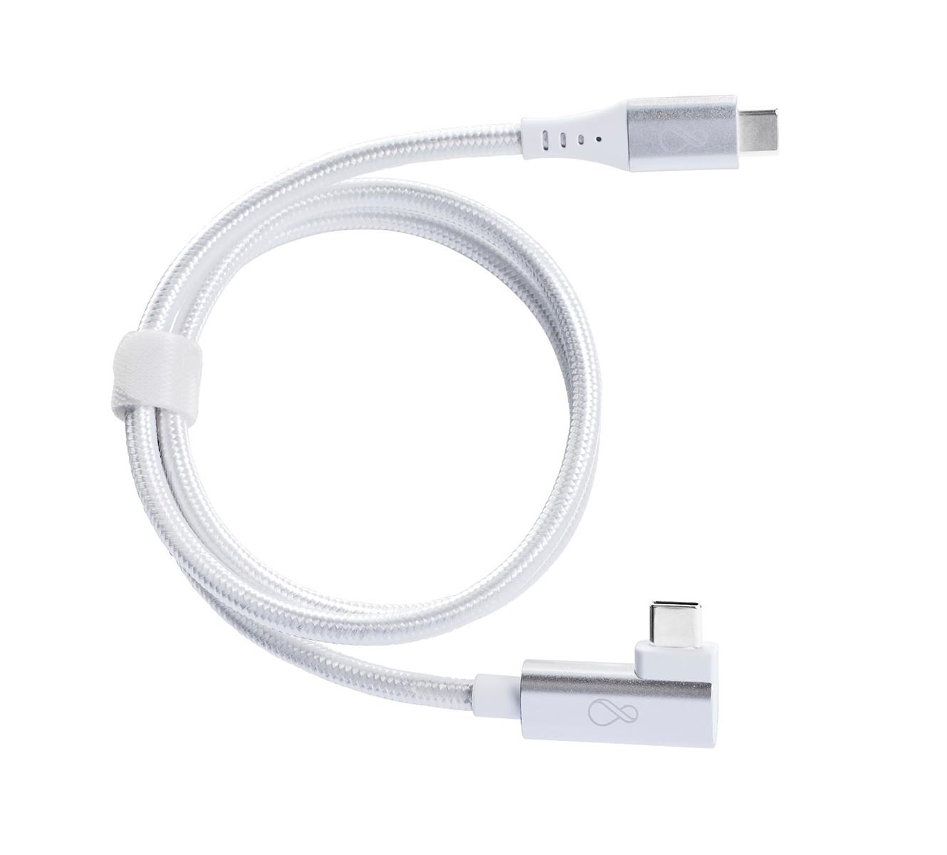 Ochnos USB-C cables are available with a white woven stocking and aluminum cover around the outlet.