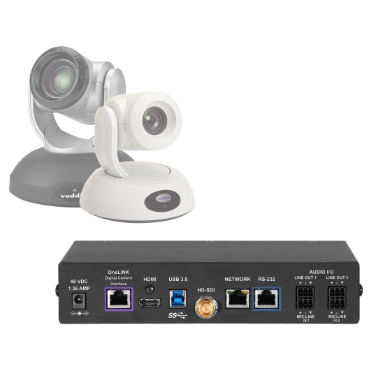 Brings your Vaddio HDBaseT camera and non-USB audio components into your USB conferencing environment and enables you to pair them with a Cisco codec for traditional videoconferencing quality. Extends power, video and control to your camera over a single category cable.