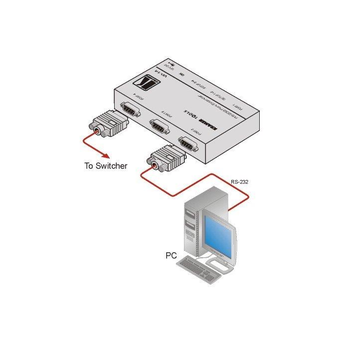 The VP−14 is a port extender for RS−232 data signals. It sends data from any port to the other three.