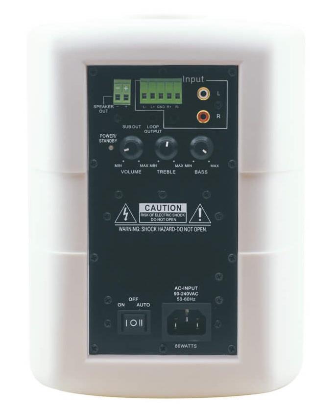 - Active Loudspeaker - Stereo 2x30W RMS, 2x80W continuous program amplifier and volume control.