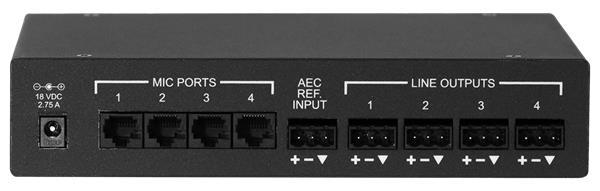 - Allows for four microphones all with independent echo cancellation and internal DSP