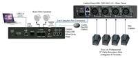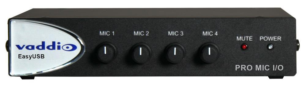 The PRO MIC I/O comes equipped with four independent echo cancelation microphone inputs and one discreet output for interfacing to the Vaddio EasyUSB Mixer/Amp. The system can be expanded to support eight microphones by adding an additional PRO MIC I/O.