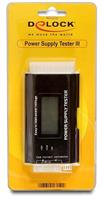 Denna testare av strömförsörjning från Delock är en robust spänningstestare för nätaggregat i dator. t.ex. ATX-, BTX- och ITX-kompatibla nätaggregat kan testas. Enheten visar på en display all försörjningsspänning med en decimal. Felmeddelanden annonseras med en varningssignal. Testaren av strömförsörjning är lämplig för ambitiösa hobbyanvändare, samt för en snabb funktionskontroll inom fackhandeln.