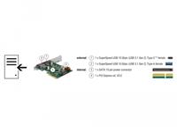 This PCI Express card by Delock expands the PC by two external USB 10 Gbps ports. Different USB devices, such as docking stations, card readers, external enclosure etc., can be connected to the card. The card allows a data transfer rate of 10 Gbps on both ports when used simultaneously.