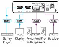 - Flexible De–embedding — De–embed the audio from the HDMI input or from the HDMI output ARC (Audio Return Channel).
