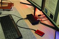Compact and sleek, this patented dock is a sure fit for shrinking desktops and tight spaces. The dock is also equipped with a VESA® bracket mounting provision, which allows for use of the Targus VESA Mount Bracket (ACX003GLZ – sold separately) to hold your dock behind your display for even greater space savings.
