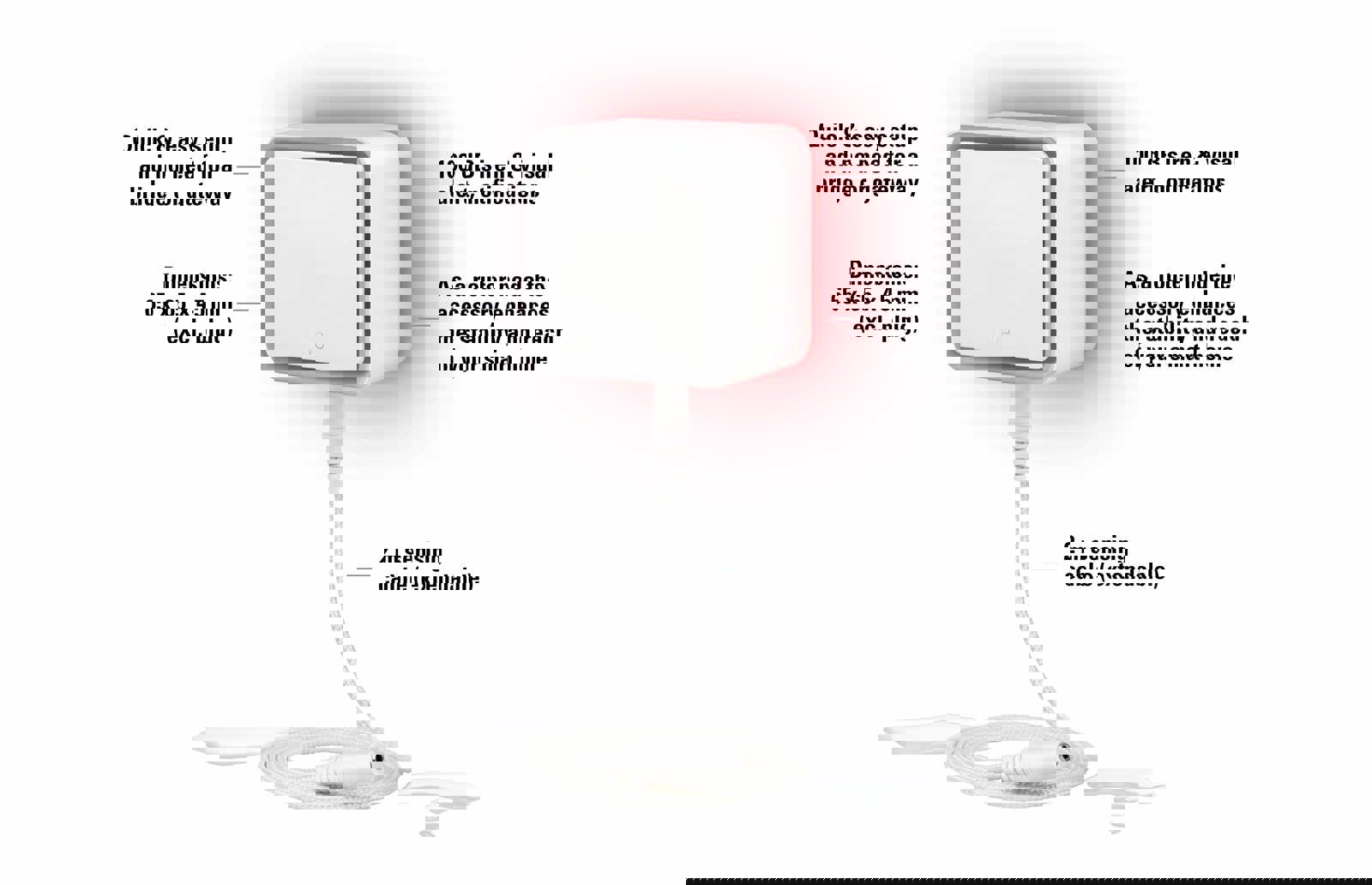 • Dimensions: 65 x 65 x 45 mm (excl. plug)