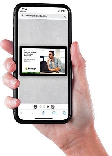 When teleworking increased, our customers needed ways to communicate outside the office, so we developed Smartsign Share. Using the sharing function, you can easily share selected screens with your coworkers. All they need is a device with a web browser, like a smartphone, tablet or computer.