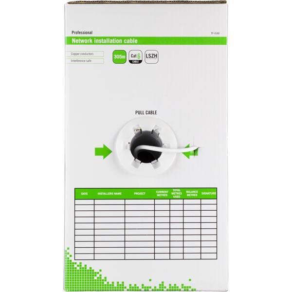 DELTACO U/UTP Cat6 installationskabel, LSZH, 305m box, 250MHz, Delta-certifierad, vit