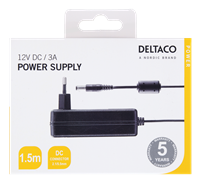Power adapter, 100-240V AC 50/60Hz to 12V DC, 3A, 1.5 m, black