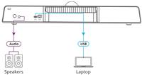 - Compact collaboration bar and flexible mounting options allow optimized use of limited space — Ideal for huddle rooms and small rooms with space for up to six people