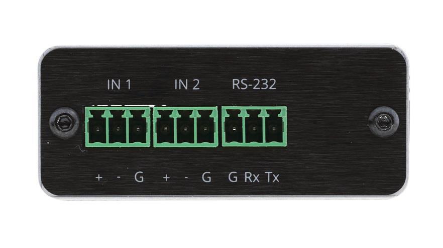 • Inputs — 2 balanced mono audio on a 3–pin terminal blocks.