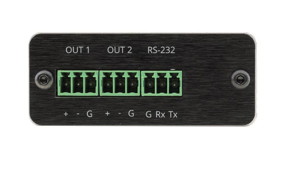 • Outputs — 2 balanced mono audio on a 3–pin terminal blocks.