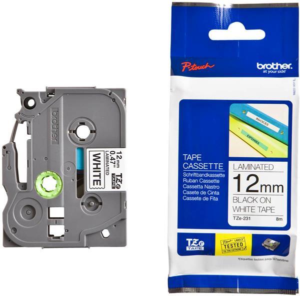 TZe-231 original tapekassett fungerar perfekt med Brother P-touch märkmaskiner. Eftersom den laminerade tapen är svart på vit är texten lättläst och passar för märkning i hemmet, på kontoret eller andra arbetsplatser.