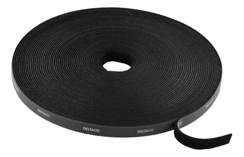 DELTACO kardborrband på rulle, bredd 10mm, 15m, svart