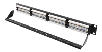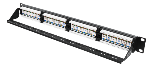 Oskärmad patchpanel för montering i 19" rack. Installationen görs enkelt via krone-plintar som är färgkodade. På baksidan finns ett kabelstöd för en smidig installation, kabelstödet går att ta bort om så önskas.