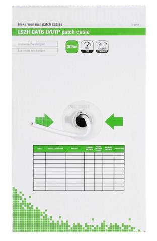 DELTACO U/UTP Cat6 patchkabel, 305m box, 250MHz, Delta-certifierad, LSZH, vit