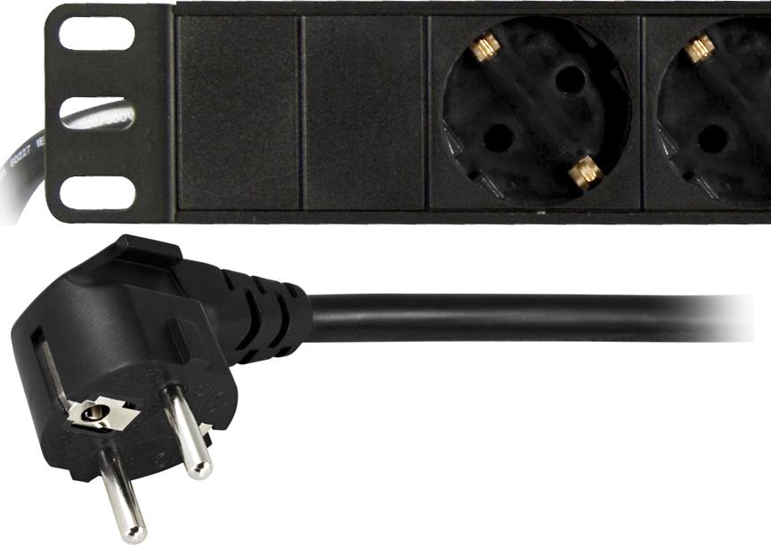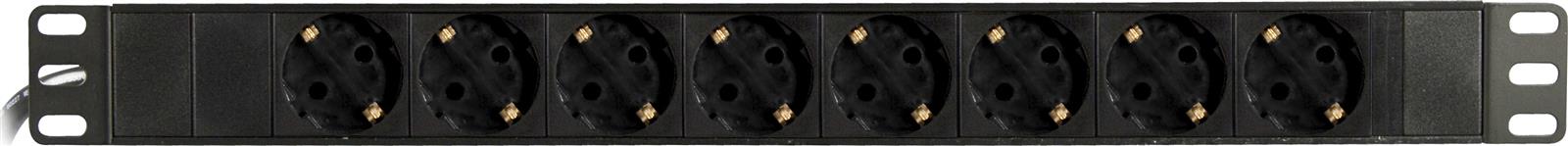 DELTACO Grenuttag med 8xCEE 7/4 uttag, 1xCEE 7/7 anslutning, 19" 1U, 2m kabel, svart