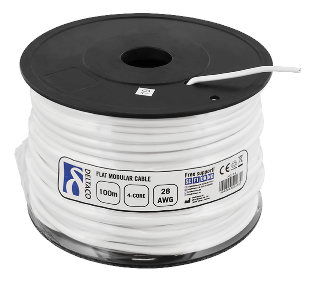 DELTACO Modularkabel, 4P, rulle, 100m, vit