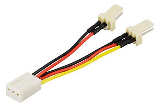 Grenar ut en vanlig 3-pins hona till två 3-pins hane. Endast en av kontakterna ger utslag i bios. T.ex. för att ansluta en chassiefläkt och en CPU-fläkt till moderkortet.