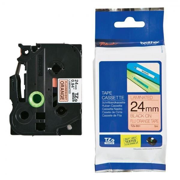 24mm tape, svart text på orange neon botten, laminerad, längd 5 m