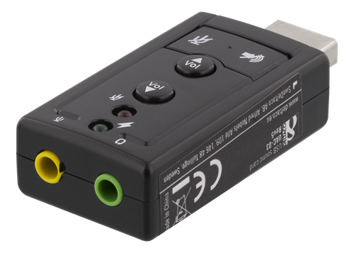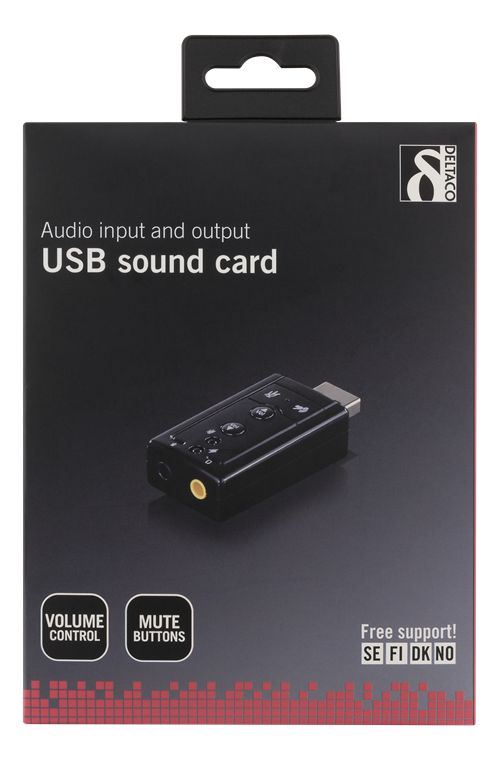 DELTACO USB-ljudkort, anslutning för hörlurar och mikrofon, 2x3,5mm hona, volymkontroll, mute-knappar