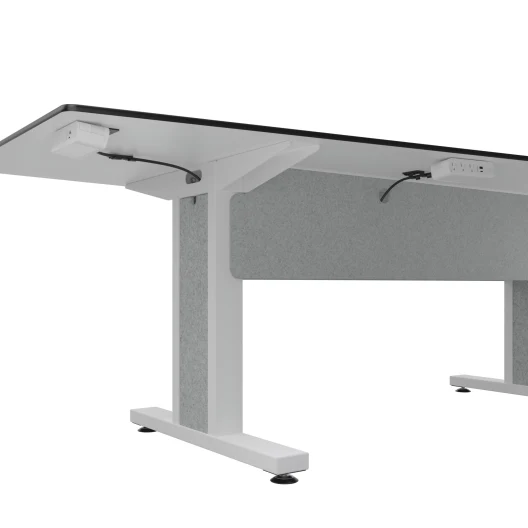 - Built in cable management within the table legs and underneath the worksurface for clean lines and no cord clutter