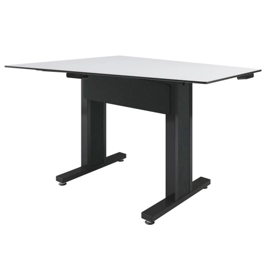 - Table top manufactured in Designer White compact laminate for a ultra thin, durable worksurface that can withstand day-to-day meetings and is easily cleaned after each use