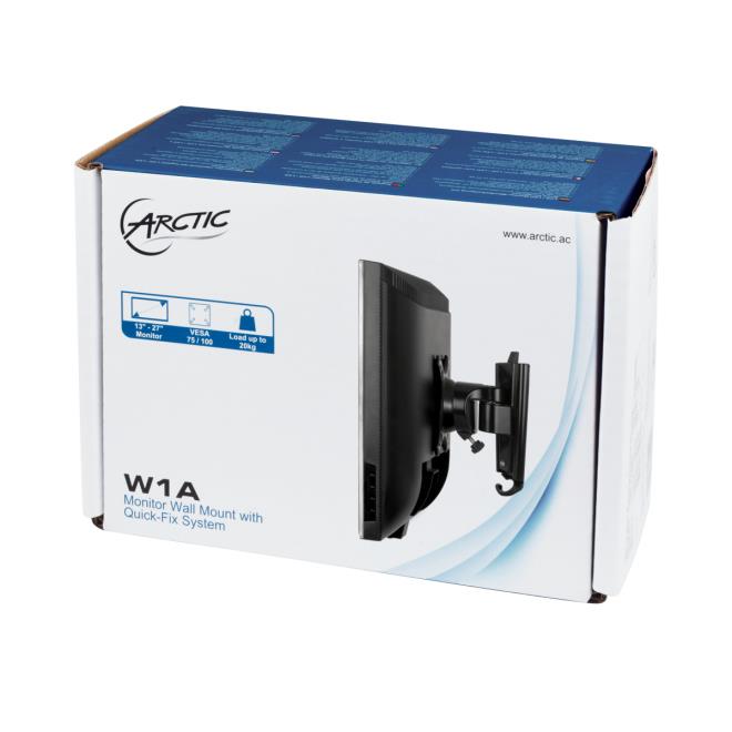 The ARCTIC W1A is a single pivot 3 axis articulation bracket mount, offers smooth adjustable screen angle with 360° rotation, 60° swivel and ±15°tilt. The ball joint design gives the flexibility to perfectly position your monitor to reduce eye, neck, shoulder and back strain. It mounts closely to the wall and maximise your work area. Compatible with monitors from 13" to 30", the two-piece direct mounting system allows quick installation and support up to 20 kg in weight.