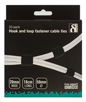 DELTACO kardborrband, bredd 20mm, 18cm, 10-pack, svart