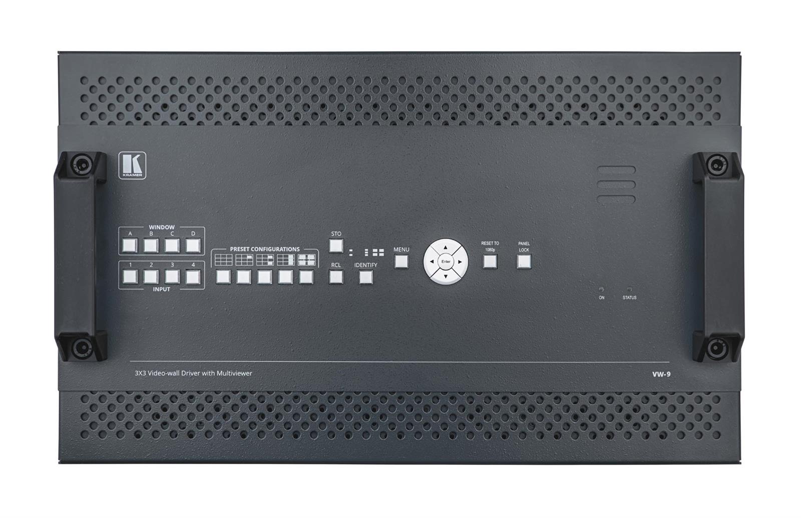 Kramer's VW−9 HDMI 2.0 Multiview Video Wall Processor is an advanced 4−input and 10−output video processor, offering a videowall driver with multiviewer features, scaling, customized screen layouts, and fast, clean video switching between inputs.