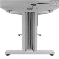 - Built in cable management within the table legs and underneath the worksurface for clean lines and no cord clutter