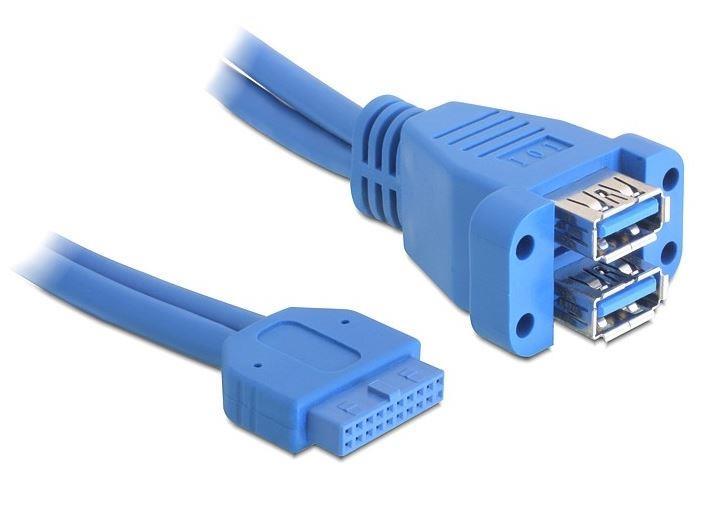 This USB 3.0 pin header cable by Delock can be internally connected to a free pin header male port of your mainboard. It expands your system by two additional USB 3.0-A female ports which can be screwed by using the four available installation holes. This cable is most suitable for self-designed computer systems.