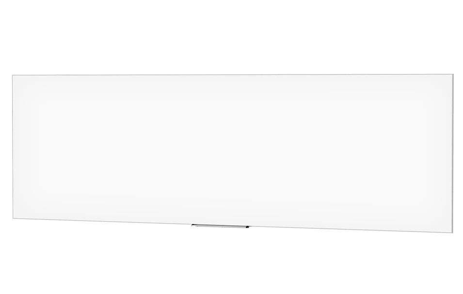 Three panel design to cover large walls with magnetic dry erase marker board functionality. The center panel is formatted for projection with side panels for collaborative writing space. The latest Dry Erase Screen features upgraded durability, surface uniformity and rigidity to ensure a superior interactive experience. The erasable surface is hotspot-free under projection with a UST projector, and now comes with new standard features - all Dry Erase Screens are magnetic and have a thin frame. It can be used with an ultra short throw projector as an interactive screen or as a whiteboard with dry erase markers.