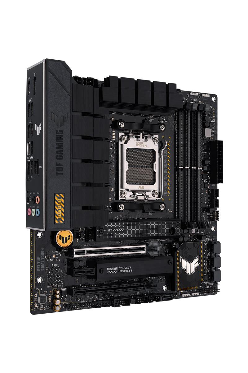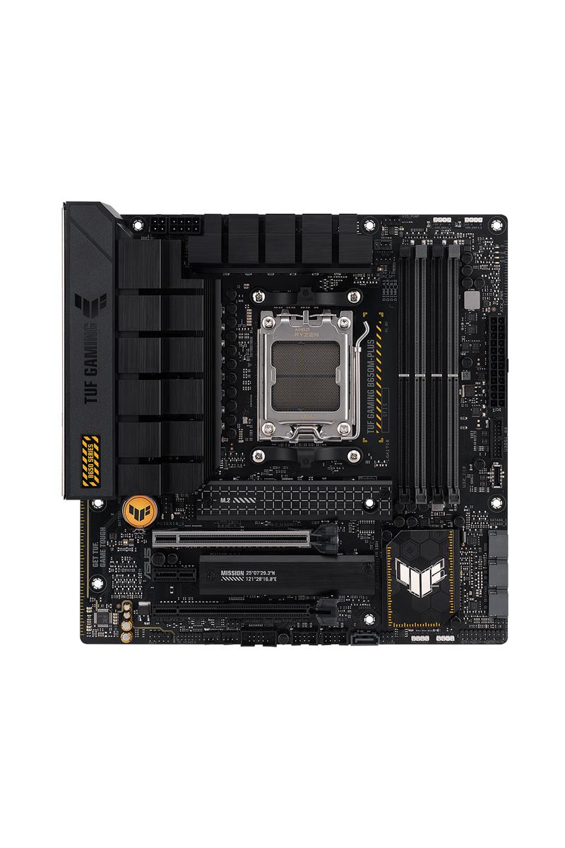 ASUS TUF GAMING B650M-PLUS takes all the essential elements of the latest AMD Ryzen 7000-series processors and combines them with game-ready features and proven durability. Engineered with military-grade components, an upgraded power solution and a comprehensive cooling system, this motherboard goes beyond expectations with rock-solid and stable performance for marathon gaming. TUF GAMING motherboards also undergo rigorous endurance testing to ensure that they can handle conditions where others may fail. Aesthetically, this model incorporates rugged off-black and geometric design elements to reflect the dependability and stability that defines the TUF GAMING series.