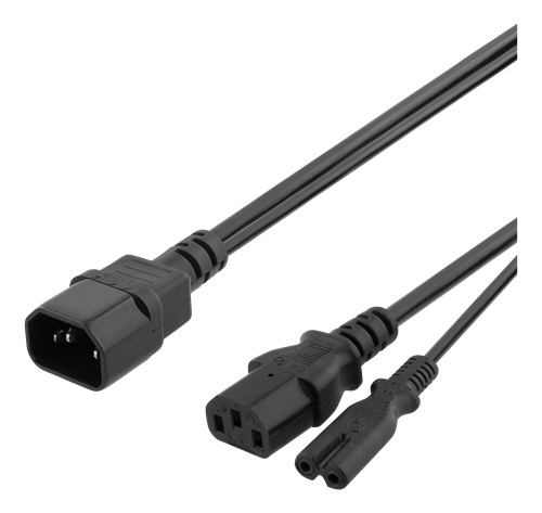 DELTACO Apparatkabel C14 till C13+C7, 0,5m, svart